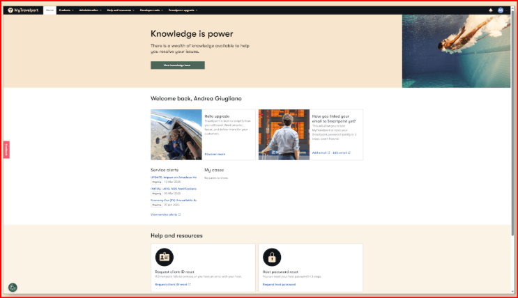 | You can also access a support chat for login issues, or speak with a live agent for help and assistance Use self-service for tasks such as: resetting your Host Sign-On or ClientID, onboarding, user administration, account profile permissions, and more. Explore Travelport’s Knowledge Base articles and documents, and access our Community for expert answers. Access MyLearning for recorded training in multiple languages, and register for live training sessions Stay updated with Service Alerts and Product Advisories |